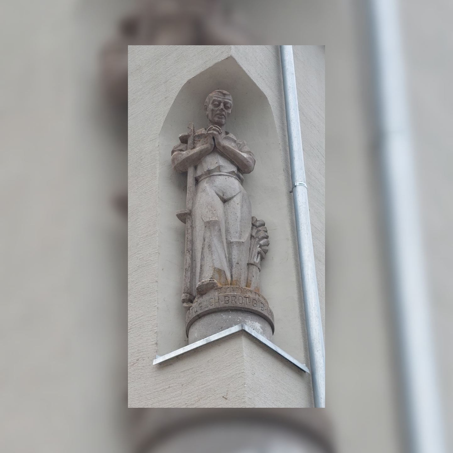Unsere Nachforschungen haben ergeben, dass es sich bei der Figur um den Heiligen Isidor handelt. Er ist der Schutzheilige seiner Heimatstadt Madrid und lebte im 11. Jahrhundert als Bauer in Spanien. Angeblich halfen ihm Engel beim Pflügen seiner Felder während er betete. Aus diesem Grund ist er auch der Schutzheilige der Bauern. Dabei hilft er gegen Dürre und sorgt für eine gute Ernte.